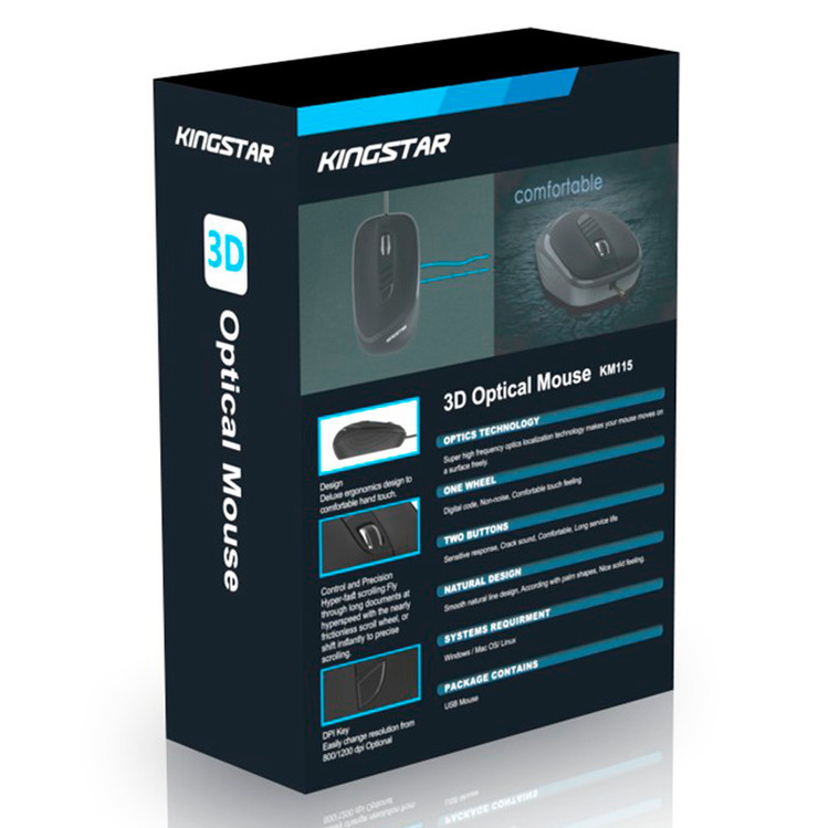 جنس بدنه از پلاستیک، با طراحی ارگونومیک و قابلیت استفاده با هر دو دست طول کابل ۱۰۰ سانتی متر با روکش ضخیم مقاوم در برابر کشش و خمیدگی تعداد کلیدها ۴ عدد، امکان اتصال به لپ تاپ، کامپیوتر و ... توسط رابط USB دارای حسگر اپتیکال با دقت ۸۰۰ تا ۱۲۰۰ دی پی آی، مجهز به کلید تنظیم DPI میزان ضربه پذیری کلیدها ۱ میلیون بار کلیک، دارای استانداردهای RoHS ،FCC و CE