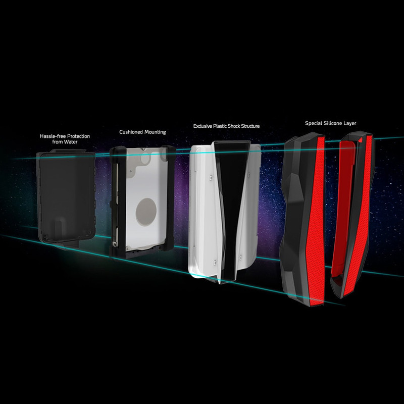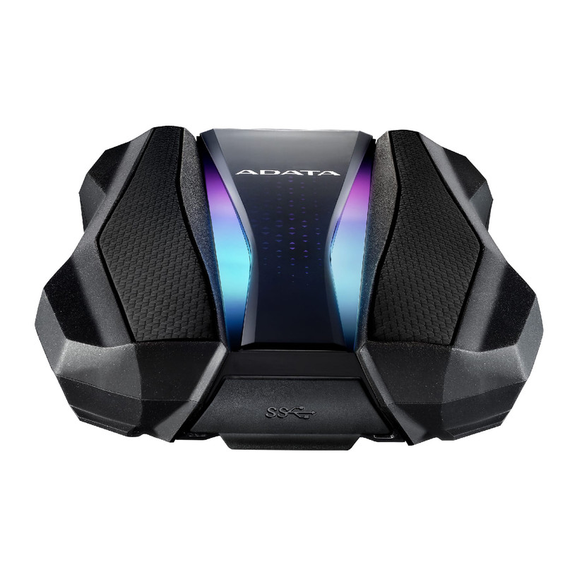 با استفاده از HD770G می توانید تمام بازی ها و اطلاعات خود را ذخیره کنید. علاوه بر این HD770G دارای استاندارد IP68 و این بدان معناست که نه تنها دارای بدنه سه لایه مقاوم است بلکه در برابر آب، گرد و غبار و شوک هم مقاوم است. از یک هارد اکسترنال نمی توان انتظاری بیش از این داشت (استاندارد IP68 به معنی مقاومت در برابر ورود گرد و غبار و مایعات به درون هارد دیسک است). HD770G حتی فراتر از استانداردهای IP68 از اطلاعات شما در برابر آب و گرد و غبار محافظت می کند. به صورت خاص می تواند 120 دقیقه در عمق 2 متری آب مقاومت کند. HD770G طوری طراحی شده است که مانند یک جنگجو سخت باشد! با رعایت استاندارد MIL-STD-810G 516.6 ، این هارددیسک اکسترنال می تواند از سقوط های ناگهانی از ارتفاع 1.22 متر جان سالم به در ببرد و از اطلاعات ذخیره شده محافظت کند. می توانید فضای ذخیره سازی محدود روی کنسول های بازی خود را، با استفاده از HD770G و فضای زیاد برای ذخیره سازی بازی های خود جبران کنید. این هارد اکسترنال نه تنها برای بازی های کنسولی بسیار کارآمد است بلکه برای بازی های کامپیوتری هم گزینه بسیار مناسبی است. برخلاف درپوش هاردهای اکسترنال دیگر که به زحمت بسته می شوند درپوش HD770G به راحتی بسته می شود و از دستگاه در برابر نفود آب محافظت می کند. هارد دیسک های اکسترنال جدید HD770G، طراحی بسیار زیبایی دارند که به این سادگی نمی توانید از آنها عبور کنید. بر روی هارد دیسک نوارهای LED RGB نصب شده است که زیبایی آنها را دو چندان می کند. البته HD770G با رمز گذاری 256 بیتی AES طراحی شده اند که حفاظت از داده ها را بهبود می بخشد. هرآنچه که بخواهید، در خانواده HD770G خواهید یافت.