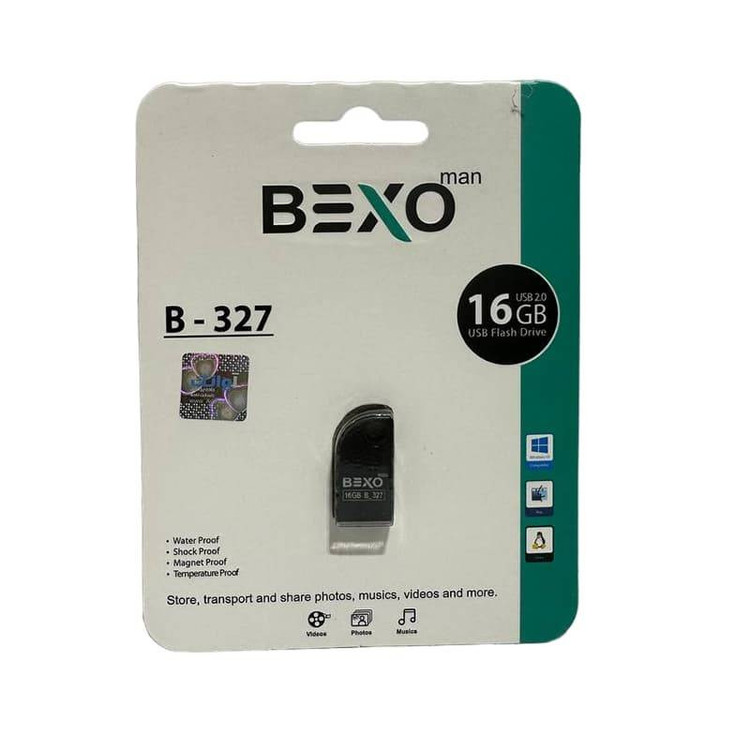 فلش مموری B-327 محصول شرکت بکسو با بدنه ی فلزی وخوش ساخت، دارای ابعادی نه چندان بزرگ و جمع جور می باشد. این فلش مموری از رابط USB 2.0 بهره می برد. فلش مموری بکسو مدل B-327 از تمامی سیستم عامل ها پشتیبانی می کند. در قسمت بالایی این فلش شیاری قرار دارد که می توانید بوسیله ی بند نگهدارنده، آن فلش را به جاسوییچی و کیف خود متصل نموده و از گم شدن آن جلوگیری گردد.