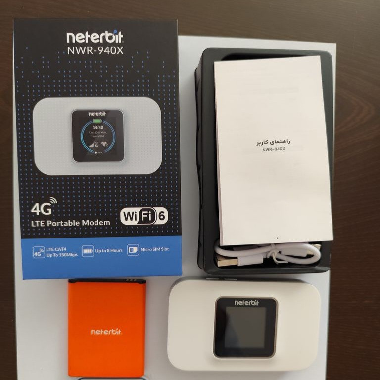 مودم جیبی 940 Neterbit انتخابی سبک و قدرتمند برای اینترنت همراه است. این مودم با پشتیبانی از 4G LTE و فناوری 6 Wi-Fi سرعتی بالا و اتصال پایدار را برای شما فراهم میکند. با امکان اتصال هم زمان تا 32 دستگاه و باتری 3000 میلی آمیر میتوانید در سفر محل کار یا خانه بدون نگرانی به اینترنت دسترسی داشته باشید. طراحی جمع وجور و امنیت بالا (WPA3) این مودم را به گزینه ای ایده آل برای استفاده روزمره تبدیل کرده است. همراه با مودم یک سیمکارت اسیاتکی با۳۰ گیگابایت ۳ماهه ارائه میشود.