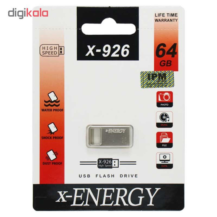 فلش مموری بندانگشتی ایکس-انرژی مدل X-926 را می توانید در جیب یا کیف خود داشته داشته باشید. وزن کم و سایز کوچک این فلش، همراه داشتن همیشگی آن را آسان می کند. ظرفیت این فلش مموری 64 گیگابایت است. طراحی این فلش به گونه ای است که می توانید یک بند به آن وصل کنید تا از گم شدن آن جلوگیری کنید. این فلش در برابر شوک، ضربه و رطوبت مقاوم است.