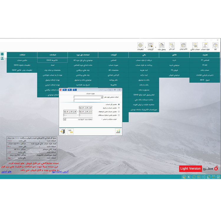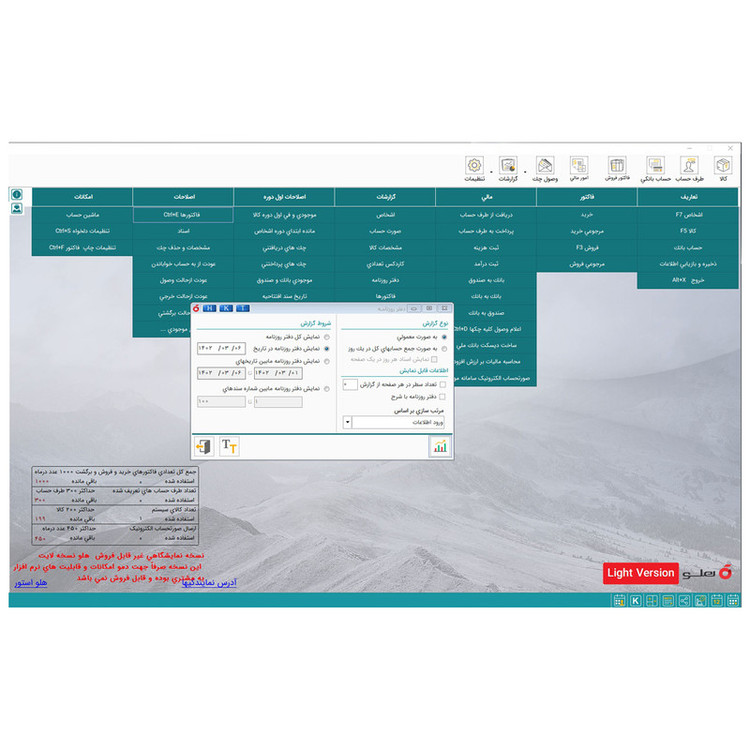 نرم افزار حسابداری نسخه لایت نشر هلو( پشتیبانی یکساله فقط در صورت ارتقا به کد 11)