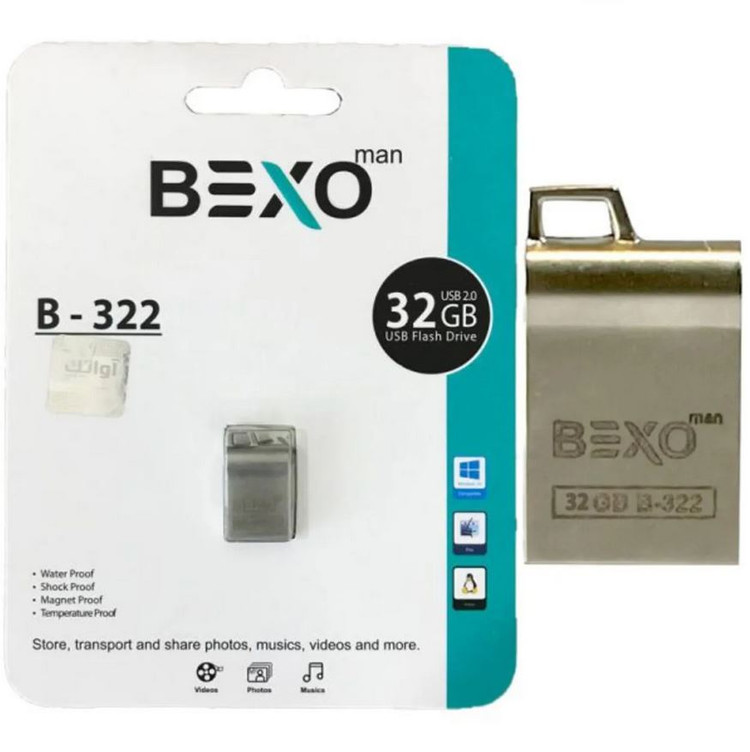 فلش 32 گیگ Bexo مدل B-322 یک حافظه با رابط USB2.0 با ظاهری زیبا و مقاوم در برابر آب، ضربه و گردو غبار شوک و اهنربا ،با ابعاد کوچک، وزن سبک و جایگاهی برای اتصال بند آویز جهت سهولت در حمل و نقل و جلوگیری از گم شدن آن یک پیشنهاد عالی برای خرید میباشد. از مواردی که برای خرید فلش مموری باید در نظر داشت میزان فضا برای نگهداری اطلاعات است فلش Bexo با ظرفیت 32 گیگابایت میتواند حجم بالایی از اطلاعات ،فیلم، عکس و … با کیفیت های بالا و HD را در خود ذخیره کند.