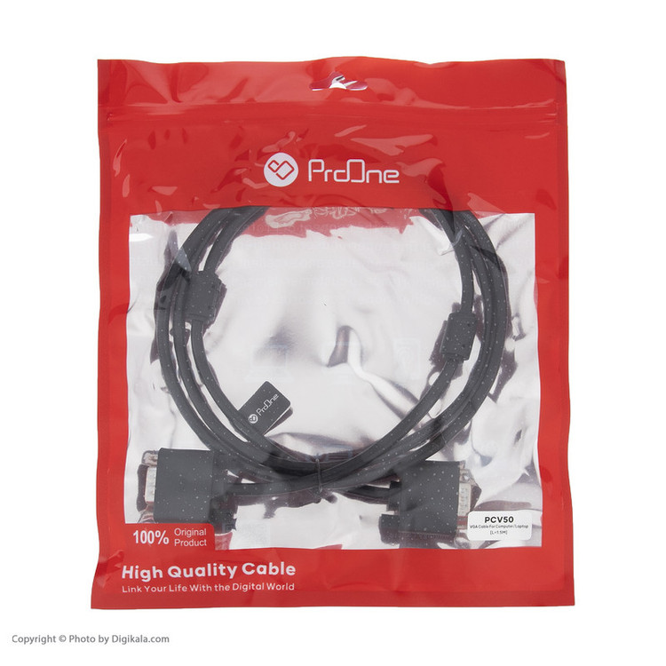 کابل VGA پرووان مدل PCV50 از نظر کیفیت برای کاربر راضی کننده خواهد بود. طول این کابل 1.5 متر بوده و وزن آن 105 گرم خواهد بود. این کابل به دلیل مرغوب بودن جنس آن میتواند مدت زمان زیادی خیال شما را بابت داشتن یک کابل خوب راحت کند. کابل VGA دادههای تصویر را به صورت آنالوگ انتقال میدهد. هر پین وظیفه خاصی بر عهده دارد. پین ردیف اول جهت انتقال رنگ قرمز، پین ردیف دوم جهت انتقال رنگ سبز و پین ردیف سوم جهت انتقال رنگ آبی کاربرد دارند. در کناره های کابل دو پیچ جهت ثابت نگه داشتن کابل متصل شده تعبیه شده است. به این رابط سه ردیفه پانزده حفره ای (DE-15) کانکتور RGBهم گفته می شود. این کابل به دلیل کاربردی که دارد برای مخاطب راضی کننده خواهد بود و میتوان گفت ارزش خرید دارد.