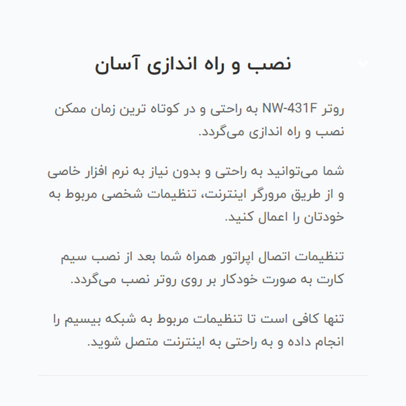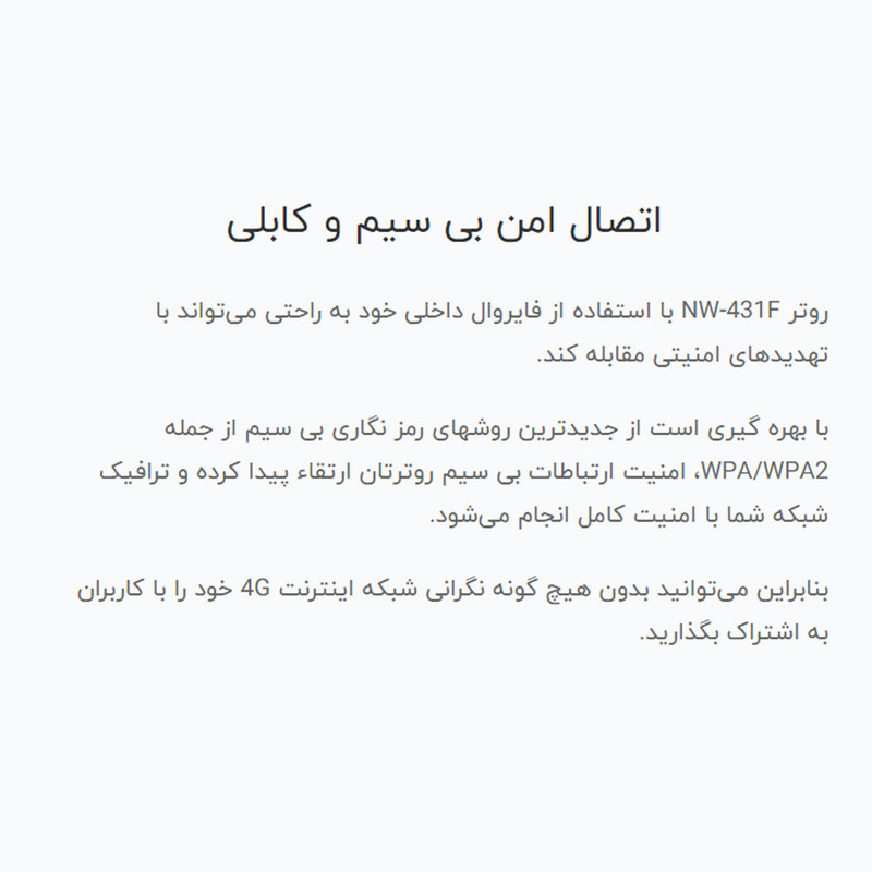 یکی از نقاط قوت اصلی این مودم، نصب آسان آن است. کافیست سیمکارت میکرو را وارد کنید، و دستگاه بهصورت خودکار اپراتور را تشخیص میدهد و به شبکه متصل میشود. بدون نیاز به نصب هیچ نرمافزار خاصی. همه چیز از طریق یک پنل تحت وب ساده مدیریت میشود، از تغییر رمز وایفای گرفته تا تنظیم APN یا بررسی حجم مصرفشده اینترنت. در بحث امنیت، این مودم با پشتیبانی از پروتکلهای WPA/WPA2 و فایروال داخلی خیال کاربر را راحت میکند. قابلیت WPS هم برای آنهایی که دنبال اتصال سریع و بدون دردسر هستند، یک مزیت است. دسترسی به تنظیمات پیشرفتهتر مثل محدودسازی دسترسی دستگاهها یا مدیریت پهنای باند هم از طریق پنل مدیریتی ممکن است. این مودم برای کسانی که دنبال اینترنت ثابت نیستند یا در مناطقی زندگی میکنند که ADSL یا فیبر نوری در دسترس نیست، گزینهای بسیار مناسب است. اگر بخواهید یک محیط کاری کوچک را پوشش دهید، یا در خانهای هستید که چند نفر بهطور همزمان با گوشی، لپتاپ یا تلویزیون هوشمند از اینترنت استفاده میکنند، NW-431F بهراحتی از پس مدیریت این بار برمیآید. حتی در مواقعی که برق قطع میشود، میتوانید با یک پاوربانک ۱۲ ولت یا UPS کوچک، آن را روشن نگه دارید و ارتباطتان را حفظ کنید.